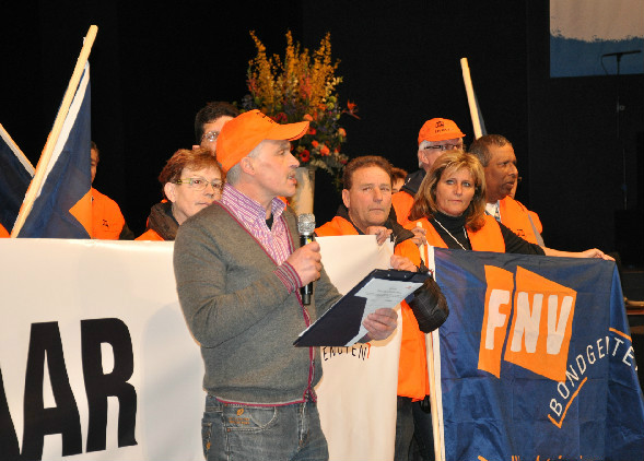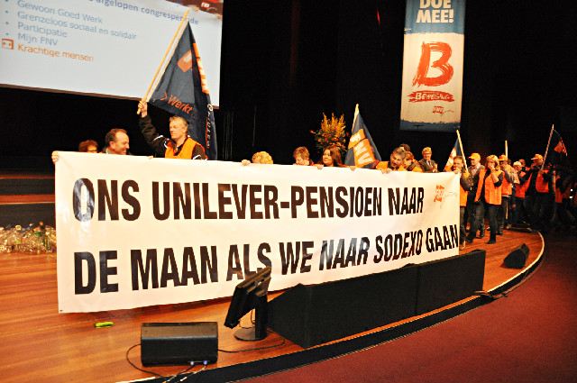 Striking Unilever workers seeking just compensation for their transfer to Sodexo made a dramatic appearance at the FNV Bondgenoten Congress in the Hague on March 21, calling on the company to meet their demands.